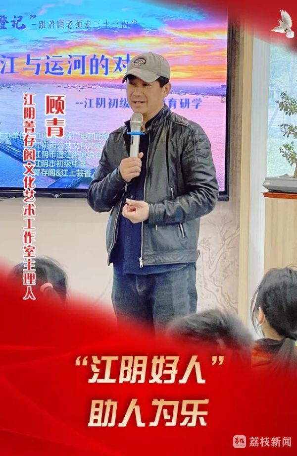 顾青,男,1973年生,江阴菁存阁文化艺术工作室主理人。多年来,顾青立足菁存阁小小书房,默默耕耘在乡邦文献的搜集与整理、藏书阅读的分享与推广、霞客故里的行走与阅读、先贤精神的传递与弘扬……这条不为人所理解的荆棘小路上。如今,菁存阁拥有5万多册藏书,并免费向市民开放。除了沙龙、讲座外,顾青还在菁存阁推出了“江上清风—我身边的党史故事”等系列讲座,“行走霞客故里 共读美丽江阴”等系列研学活动,“澄江旧话—菁存阁藏江阴乡贤史料展”等系列文献展,开发了“江上芸香”江阴本土文创系列产品,传承乡邦文化,讲述江阴故事,传颂城市文明。顾青家庭和顾青本人先后获评“江苏十大藏书之家”、江苏省“书香家庭”,江阴市“十佳公益阅读推广人”。