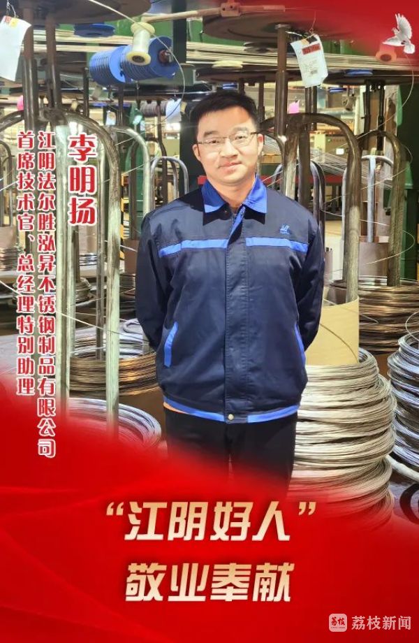 李明扬,男,1986年生,江阴法尔胜泓昇不锈钢制品有限公司首席技术官、总经理特别助理。李明扬曾负责多项科研项目和新产品研制生产工作,其中多项国家级项目材料研制均为国内首次研制成功,所研制的多种材料分别通过了国家能源局、中国机械工业联合会和中国金属学会等机构的鉴定,多项研制成果均达到国际先进水平,为我国多个行业材料国产化研制作出了贡献。在法尔胜,他所负责研发的特殊及民用高品质弹簧线、冷墩线、棒材、特殊用途钢丝绳等产品在多方面都取得了较好的成效,清洁能源行业用产品首次实现国产化研制,取代进口打破垄断。李明扬入选(2017—2019年度)中国科学技术协会青年人才托举工程;获评中国冶金科技进步奖一等奖、2021年度江苏省“双创计划”创新人才。