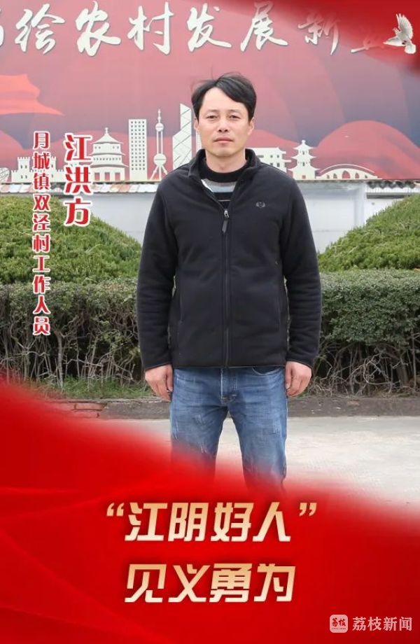 江洪方,男,1980年生,月城镇双泾村工作人员。2023年1月21日是大年夜,当晚6时许,江洪方结束了一天的值班,准备回家吃年夜饭。途经海港大道辅道时,他突然发现一辆小轿车侧翻在路边的沟里,于是停车上前查看情况。由于车门严重变形,驾驶员被困车内,一脸惊魂未定的模样。江洪方担心再次发生意外,立即敲打车窗,提醒司机熄火,并不断安慰、引导他配合施救。在确保车辆稳固后,他使尽全力掰开车门,将驾驶员小钱成功救出。原来,急着回家吃年夜饭的小钱,急转弯时操作不当,车辆侧翻到1米多深的沟里。成功获救的小钱对江洪方十分感激。
