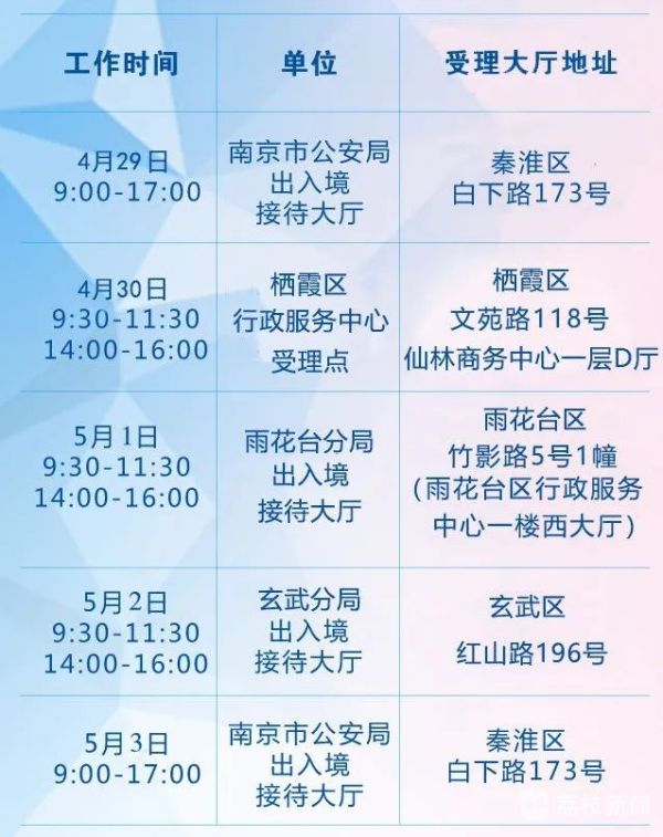 答:五一期间全市出入境窗口轮流对外开放,具体信息如图。