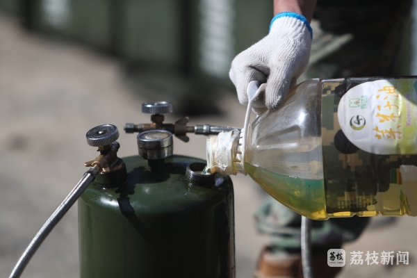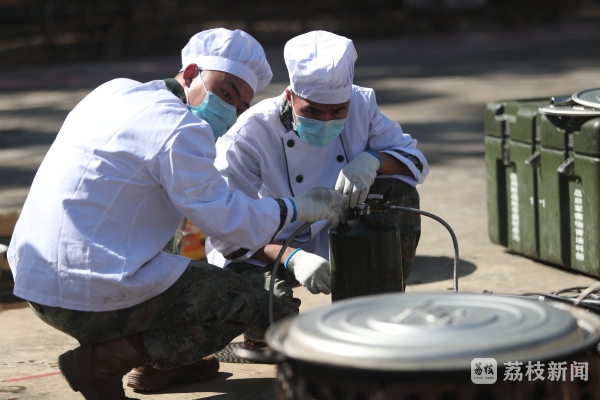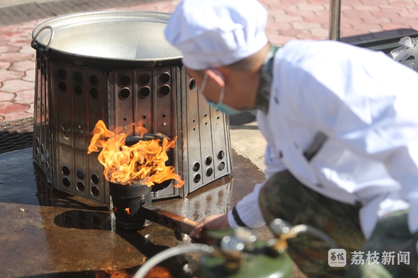 他们团结协作,有序展开各类炊事灶具,快速加注燃料,加压燃气灶。随着灶火腾飞,掀起了第一个炊事比武小高潮。