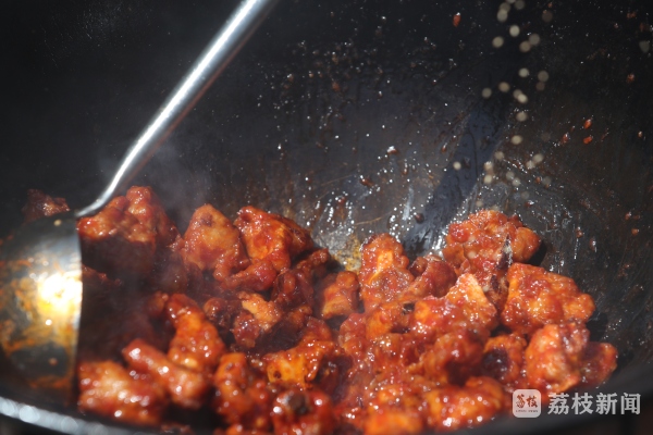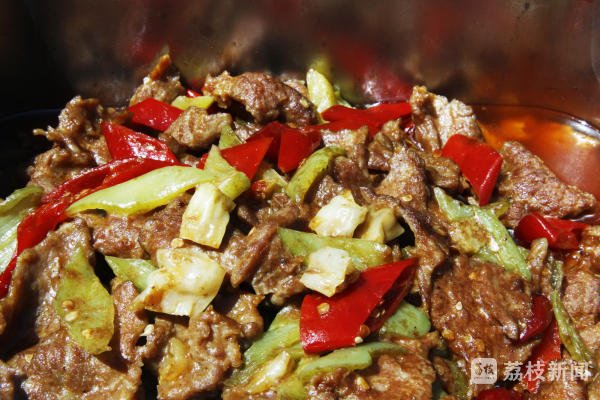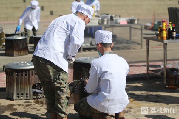 “大火、大火。”“转小火、转小火。”“进主材。”“配菜进。”随着王飞飞不断下令转换大小火,加上十几年炊事经验对于调味料的精准控制,一个个菜品伴着浓郁的香味,出锅了。野战炊事器材单元难点在于锅深导热快,没有熟练的掌握使用很容易糊锅粘锅。