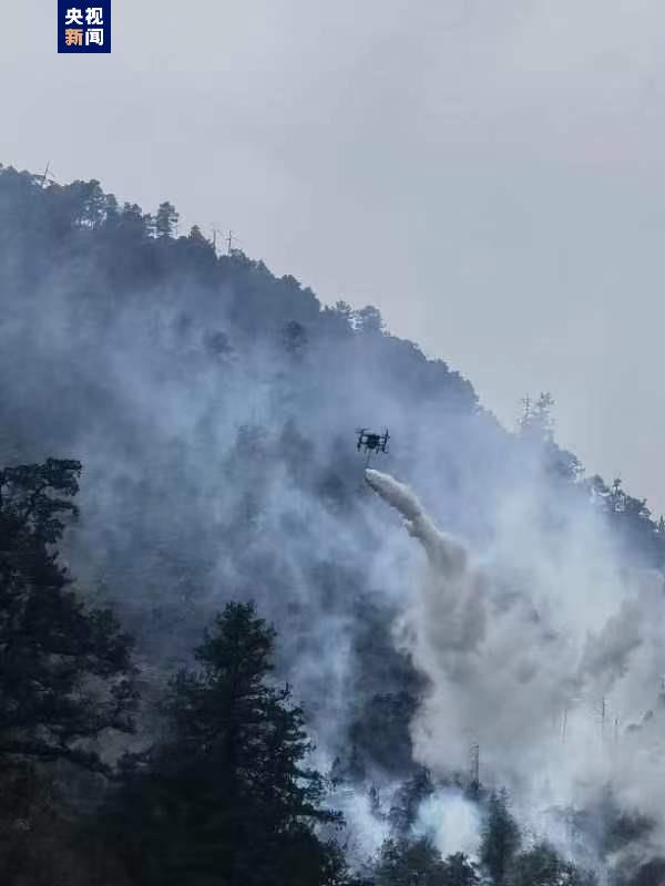 4月19日,发生在九寨沟县黑河镇羌活沟村森林火灾,经过四川森林消防指战员奋力扑救,于21日下午转入看守阶段。此火场地形为中海拔河谷平原,火烧迹地内烟点处于悬崖处,人员无法直接到达,现场消防救援人员综合分析情况后,决定采用无人机进行灭火,经过多方扑火力量通力协作将大火扑灭。