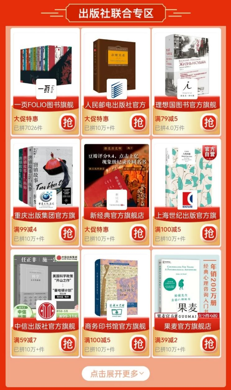 最新一季“多多读书月”迎来了不少新朋友。中华书局、一頁folio、白马时光、北京时代华文书局等多家权威出版社、图书品牌首次携手读书月活动,将为拼多多消费者带来更多优质作品。中华书局相关负责人表示,“书局从去年年底入驻拼多多。希望通过读书月活动,提高书局店铺在平台的曝光率,同时希望通过平台活动把传统文化能传播得更广泛,我们愿意和‘多多读书月’一起成长。”