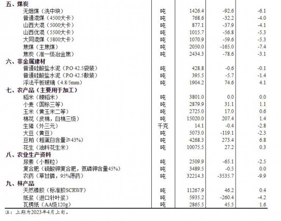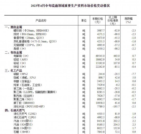 据国家统计局,据对全国流通领域9大类50种重要生产资料市场价格的监测显示,2023年4月中旬与4月上旬相比,19种产品价格上涨,29种下降,2种持平。