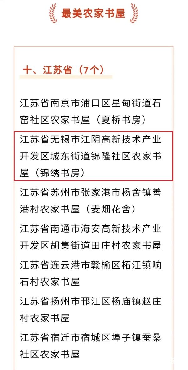论坛上,农家书屋创新示范案例“乡村阅读推广人”和“最美农家书屋”入选名单正式揭晓。江阴高新技术产业开发区城东街道锦隆社区农家书屋(锦绣书房)成功入选“最美农家书屋”,一起了解一下!