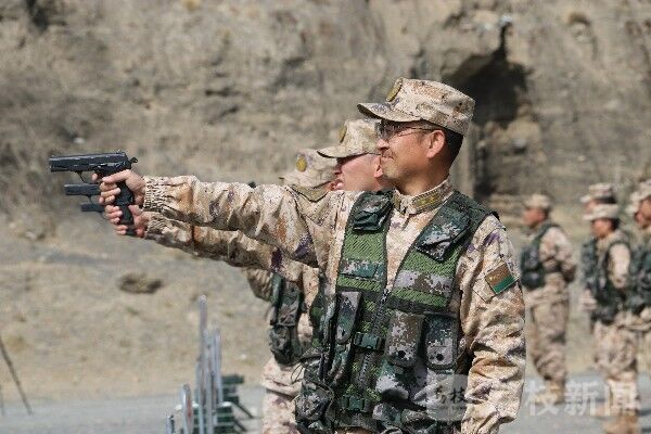 练兵先强将。手枪精度射击赛场上,军官们率先垂范,和战士们整齐列队,上弹匣、开保险,拉枪机,动作行云流水,眼神威武霸气,硝烟味弥漫整个赛场。