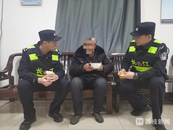 江边夜寒风大,民警见老人精神状态较差,遂将老人接到派出所,为老人提供了易咀嚼消化的食物和一碗热牛奶。民警一边安抚老人的情绪,一边想方设法联系老人的家属。经过耐心交流,老人慢慢想起自己住的小区,但是依旧想不起家属的姓名和联系方式。民警通过警务信息查询平台查找到老人确切的住址和家人的联系电话后,驱车将老人送到小区,将老人平安送回家。