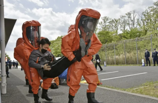 【环球网报道】据日本共同社25日报道,为将于5月在日本举行的七国集团(G7)峰会做准备,多方25日在成田国际机场举行了一场应对化学恐怖袭击的训练,成田国际机场运营公司、消防人员、警察等共约200人参加。