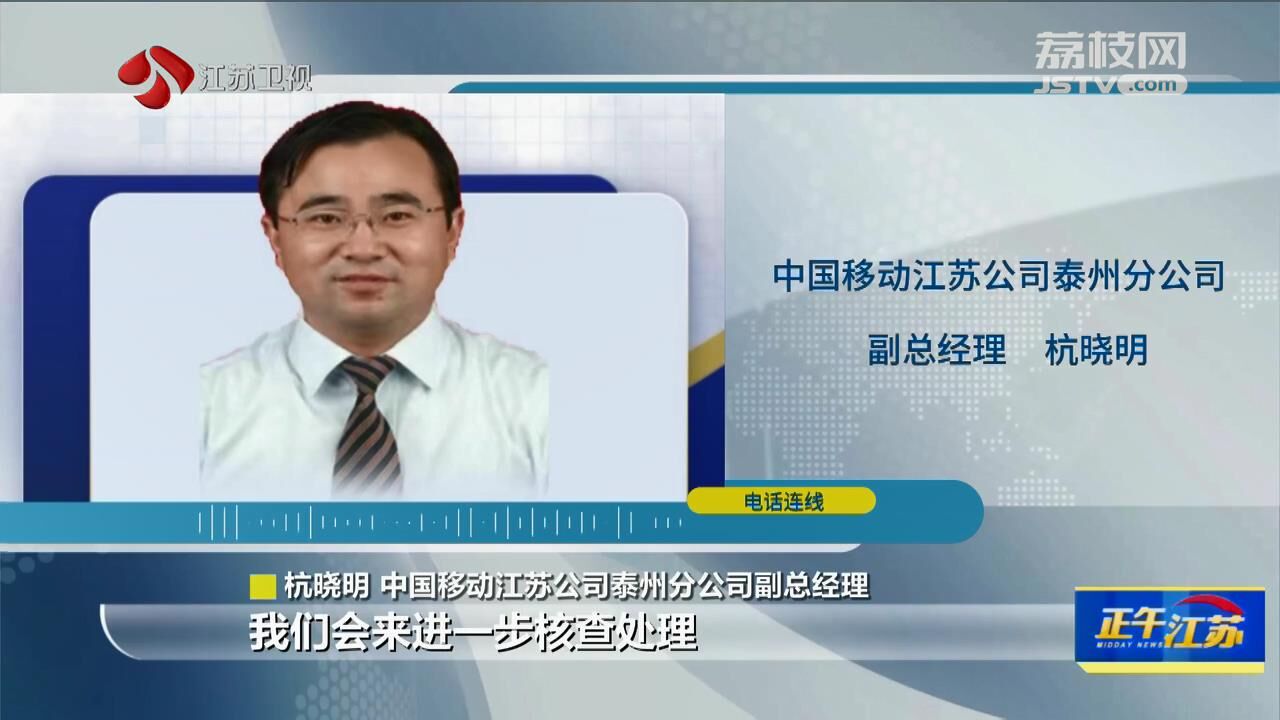 中国移动江苏公司泰州分公司副总经理杭晓明:“客户反映的问题,有可能是我们的营业人员在办理环节跟他之间的沟通,大家的信息不是很全面所致。我们会来进一步核查处理,切实维护客户的合法权益。”