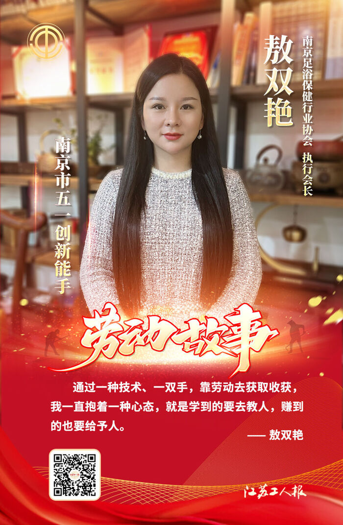 一次偶然的机会,敖双艳认识了她的师傅——保健按摩高级技师廖敬夫。廖敬夫是全国技术能手、全国五一劳动奖章获得者,曾获全国沐浴行业职工职业技能竞赛第一名。当时廖敬夫在南京做公益活动,敖双艳被他身上的一种能量感染了:“他在给别人做技术的时候,那种感染力、那种关怀和大爱,深深地吸引了我。我就悄悄地打听他的地址,到他那里学习。”