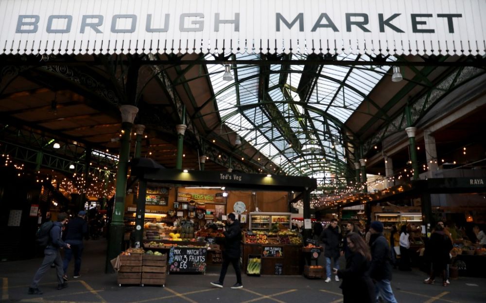 2月9日,人们在英国伦敦博罗市场内采购。新华社记者李颖摄