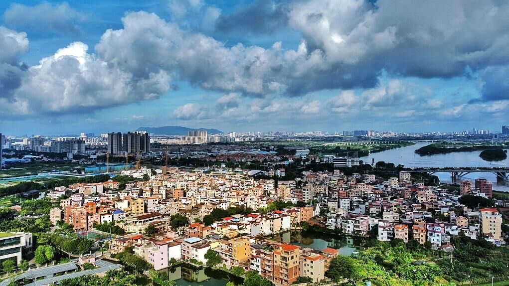 航拍广东佛山小布村房屋紧密排列。视觉中国 图