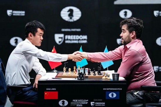 新华社北京4月26日电(记者郑直 王镜宇)国际棋联消息,2023国际棋联国际象棋世界冠军赛当地时间26日在哈萨克斯坦阿斯塔纳结束第12轮比赛,此前5:6落后的中国棋手丁立人执白经过38回合战斗力克俄罗斯棋手涅波姆尼亚奇,在比赛仅剩两轮时将比分扳为6:6平。