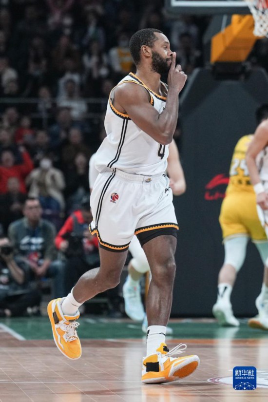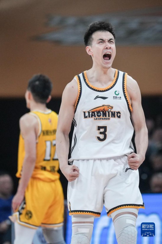4月26日,辽宁本钢队球员赵继伟在比赛中庆祝。新华社记者 潘昱龙 摄