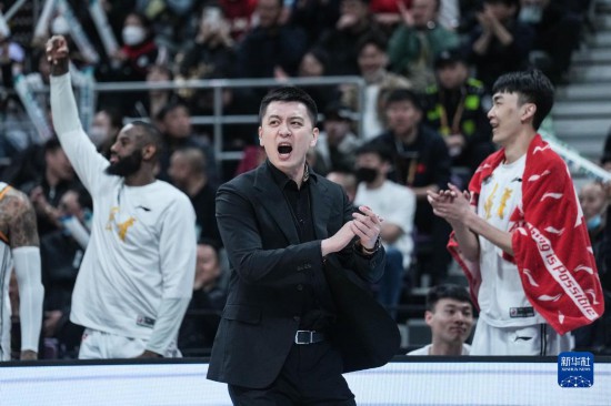 4月26日,辽宁本钢队主教练杨鸣在场边指挥。新华社记者 潘昱龙 摄