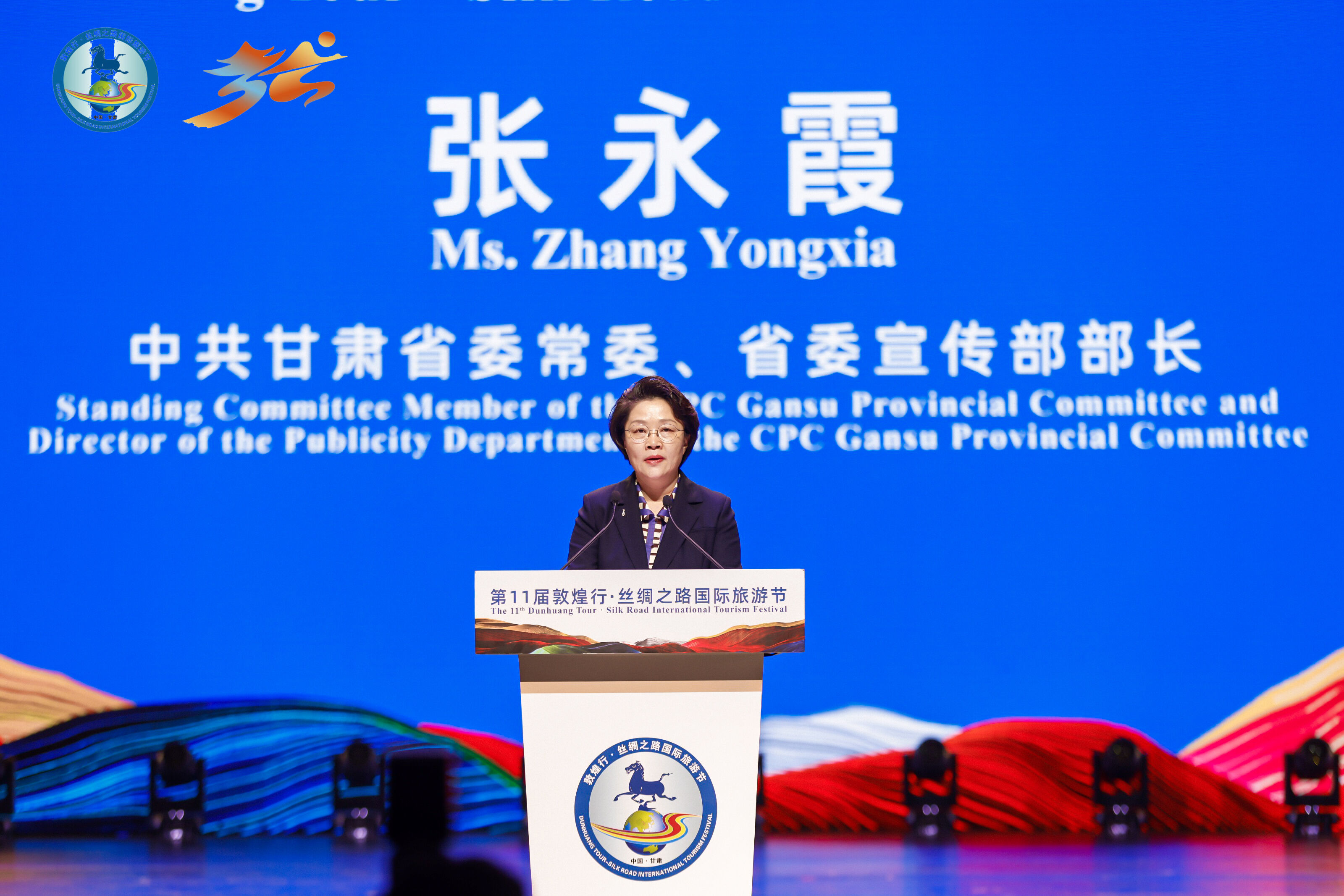 张永霞在致辞中表示,今年是习近平总书记提出共建“一带一路”倡议10周年,是全面推进中国式现代化建设的开局之年。隆重举行第11届敦煌行·丝绸之路国际旅游节,共商发展、共谋合作、共话未来,意义重大,充满期待。“如意”甘肃承载着华夏文明的辉煌与梦想,演绎着东西方交流的诗与远方,荟萃着锦绣山河的壮美与神韵,书写着陇原儿女的坚韧与奋发。我们将牢记习近平总书记殷殷嘱托,利用独特的文化遗产和自然遗产优势,统筹旅游资源保护和开发,完善旅游设施和基础服务,放大文化旅游业综合效应,努力把甘肃建成丝绸之路的黄金通道、向西开放的战略平台、品质旅游的绝佳胜地、经贸物流的区域中心、人文交流的纽带桥梁。
