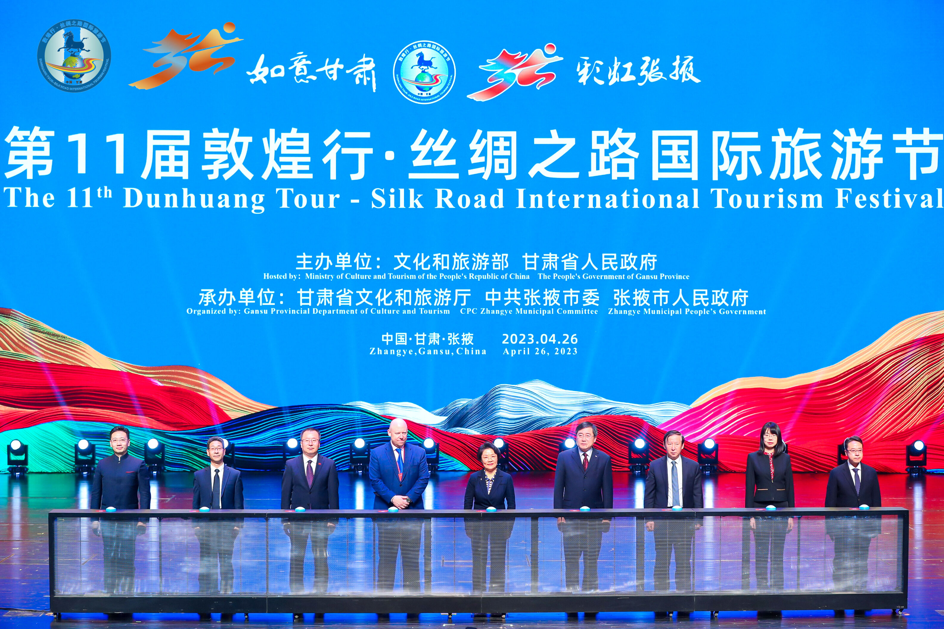 荔枝新闻讯 共享丝绸之路新机遇,相约如意甘肃敦煌行。4月26日,由文化和旅游部、甘肃省人民政府联合主办的第11届敦煌行·丝绸之路国际旅游节在甘肃省张掖市盛大开幕。世界旅游联盟主席张旭,新西兰驻华大使毛瑞,中共中央对外联络部原副部长、中国前驻乌兹别克斯坦共和国大使、全国政协参政议政特聘专家、当代中国与世界研究院高级研究员于洪君,中共甘肃省委常委、省委宣传部部长张永霞,以及来自“一带一路”沿线48个国家、28个省区市的692位旅行商、投资商、媒体记者参加开幕式。