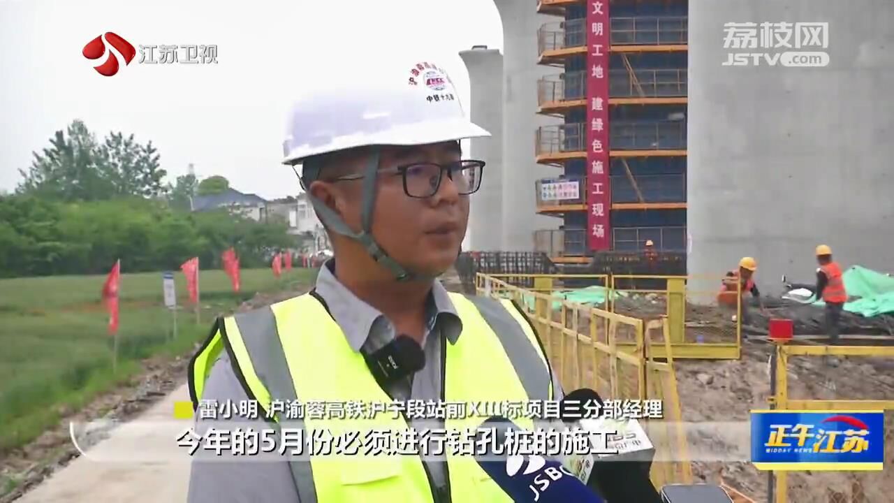 沪渝蓉高铁沪宁段站前XIII标项目三分部经理雷小明:“跨长深高速的大跨径连续梁是控制性节点工程,今年的5月份必须进行钻孔桩的施工,今年的12月份必须进行连续梁的施工。”