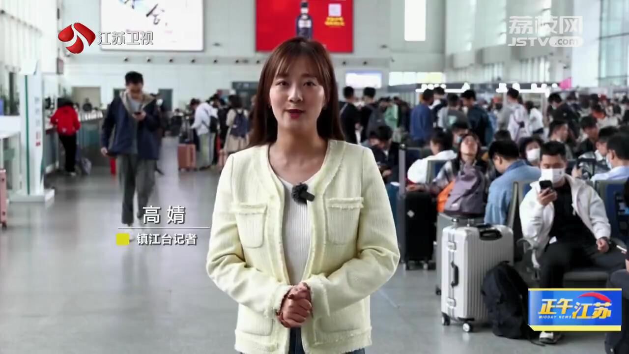 镇江台记者高婧:“我现在是在镇江火车站南广场的候车室。从我身后的旅客情况来看呢,今年的五一假期,大家伙的出游热情还是十分高涨的。从目前我们所了解到的预售票的情况来看,今年的五一假期铁路镇江站预计发送旅客42万人次。仅今天一天就将发送乘客4万人次,主要方向是集中在了上海、南京、苏州等地。为了保障旅客们的顺利出行,铁路镇江站也是增开了往上海、南京、合肥、西安、蚌埠、连云港等地共计27趟临客。在这里呢,我们也欢迎广大游客朋友们来咱们镇江玩一玩。”