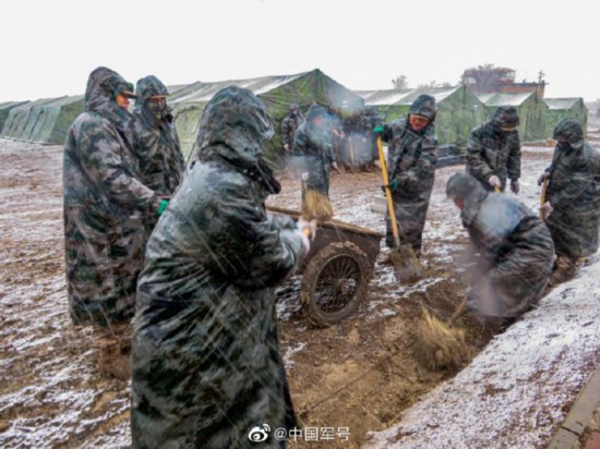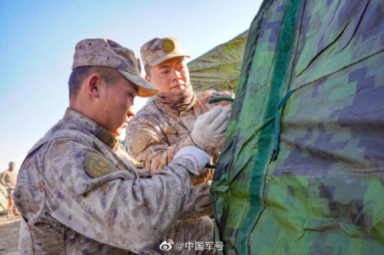 近日,陆军第82集团军某合成旅远程机动开赴东北开展野外驻训任务。铁路输送完毕后,官兵们迅速安家设营。尽管黄沙漫天、风雪交加、帐篷被大风吹飞、饭菜中夹杂沙子,官兵们依然高标准完成设营工作,为部队野外驻训任务打下坚实基础。(吉峰 姚欣彤 袁恩慧 于烜浩)