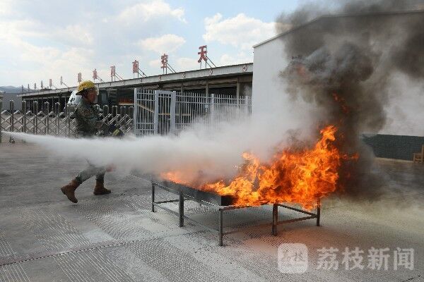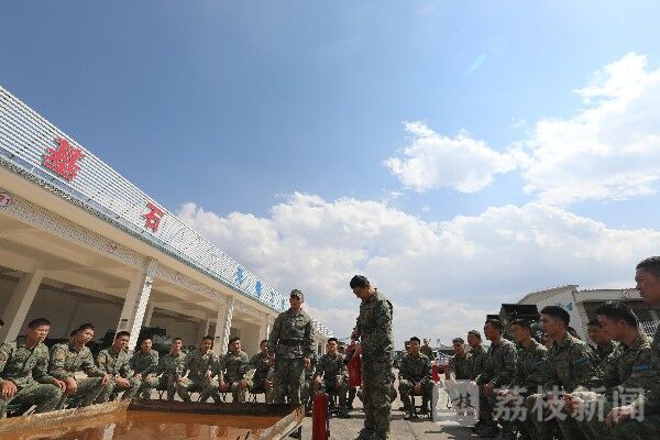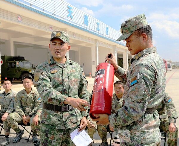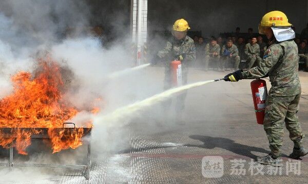 分队消防员把日常生活中最常见的起火原因一一列举,讲解处置方法,并现场发动官兵积极提问、现场组织抽问,帮助官兵牢记消防知识。讲解后,分批组织官兵体验使用灭火器材,正确掌握灭火要领。