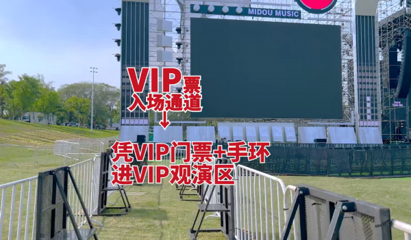 持VIP门票的观众请注意,VIP区入场通道,位于普票区两侧。