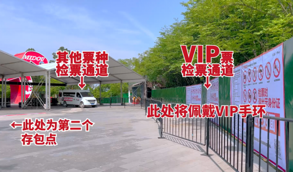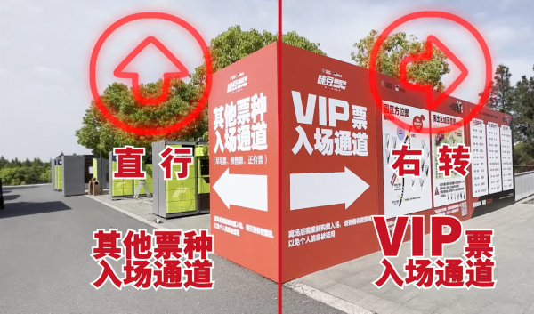 其次,VIP票检票通道和其他票种检票通道是分开的,VIP票通道位于【右侧】。