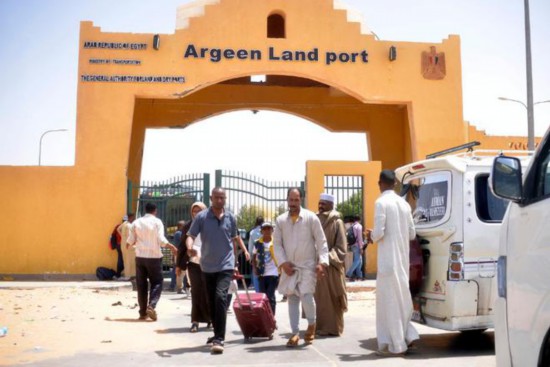 4月27日,在埃及南部与苏丹交界的阿尔根边境口岸,人们离开苏丹进入埃及境内。新华社发(拉德万摄)