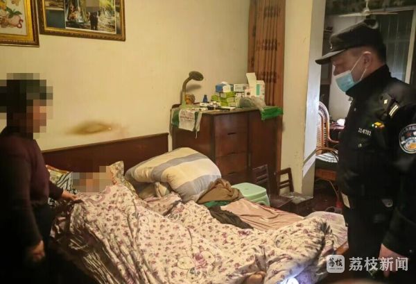 民警到达现场时,老人正躺在床上痛苦地呻吟。徐奶奶很着急,告诉民警,自己的老伴今年63岁,有脑梗、尿酸偏高、肾功能不好等基础病,夜里是糖尿病并发症引起的腿痛,子女家住江宁也无法及时赶到,只好寻求120和警察的帮助。