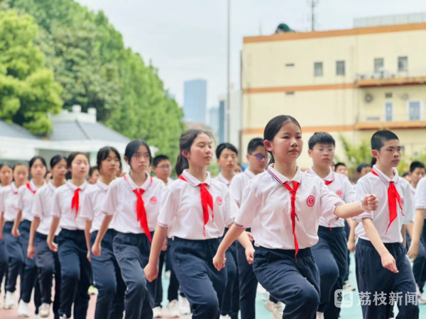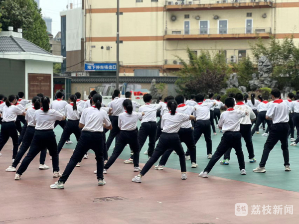 在南京鼓楼实验中学,来自学校初一年级学生们进行三天拓展素质训练汇报比赛,展示着活动所取得的丰硕成果。大家精神抖擞、激情飞扬、动作整齐,推掌、出拳、踢腿都刚劲有力,一举一动整齐划一,一招一式张弛有度。