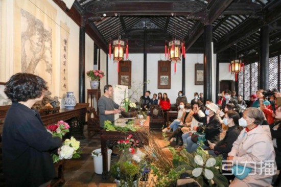 位于入口门厅处、轿厅、云窟等厅堂的文化科普区,以展板、文创展示结合现场互动的形式,进行牡丹、芍药鉴赏、养护等文化内容的科普。网师园还以牡丹、芍药为主题,开展东方插花技艺分享与互动活动。