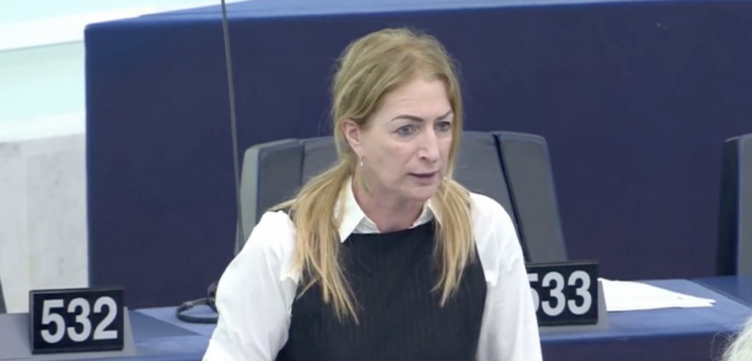克莱尔·戴利4月19日在欧洲议会全体会议上发言的视频截图