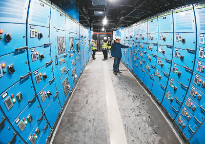 在河北省张家口市的合盈数据(怀来)科技产业园,工人正进行设备安装调试。