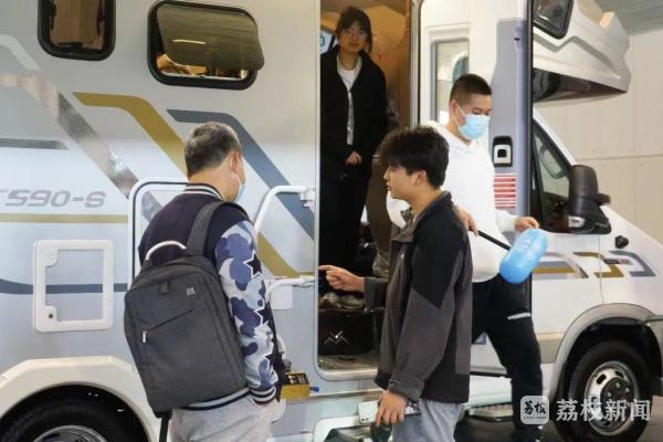 江苏天弘华舜汽车服务有限公司销售总监乔袁峰介绍,他们的新款车可以选装外放电功能,满足现代人出门旅游、野营,用上电烧烤、电火锅的需要。
