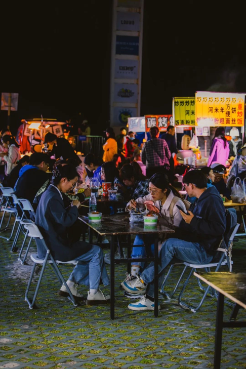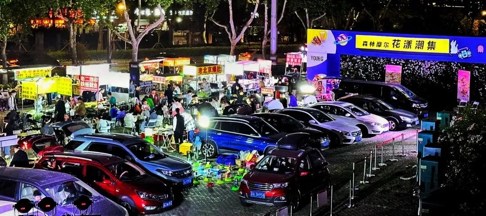 假期期间开市的“森林美食集市”,汇集天南海北的美食和各类烧烤,还有后备箱市集贩卖各类饮品和文创,游客和市民在这里撸着烤串,喝着啤酒,吃着小吃……带来了浓浓的烟火气。