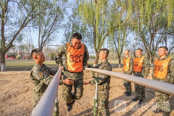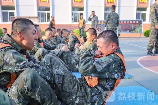 短暂休息后开始了器械考核。新兵们动作行云流水,尽情展示一个多月以来学习训练的成果,身旁战友也不停加油助威。