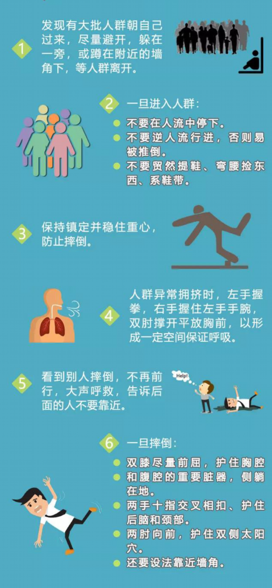 遇到事故时,应根据工作人员引导进行疏散,不要相互拥挤,以免发生挤压踩踏事故。