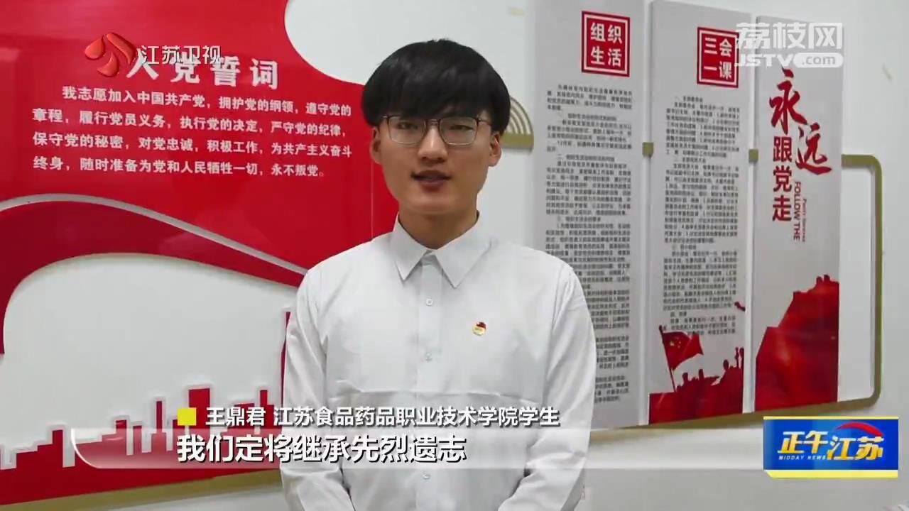 江苏食品药品职业技术学院学生王鼎君说:“我们定将继承先烈遗志,响应时代召唤,持续弘扬五四精神 ,以不畏风雨的责任担当,到祖国最需要的地方去贡献自己的青春力量。”