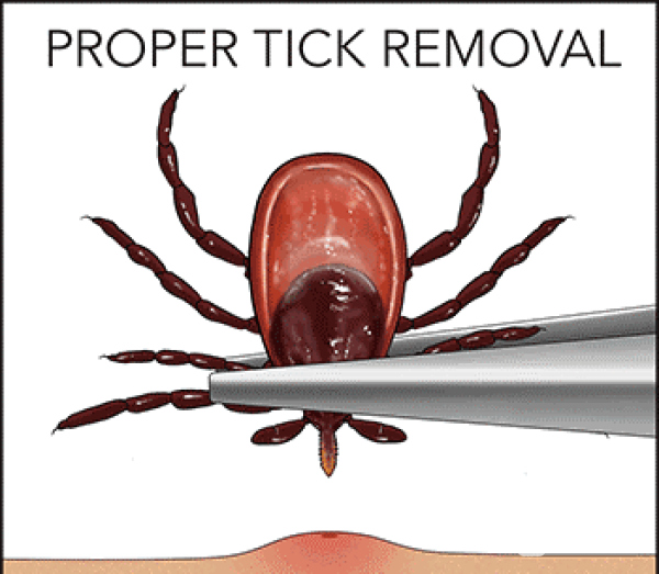正确的拔除方式是用镊子贴紧皮肤,夹住蜱的口器迅速拔出。