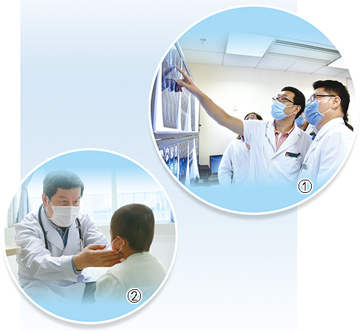 图①:国家儿童医学中心主任、北京儿童医院院长倪鑫(中)在儿童肿瘤多学科联合门诊出诊。