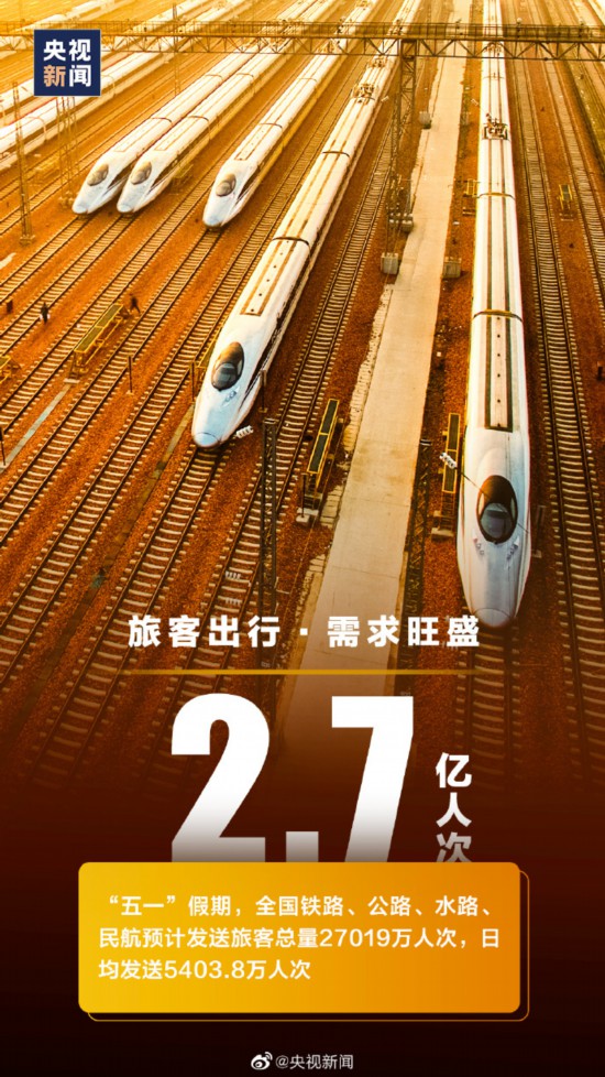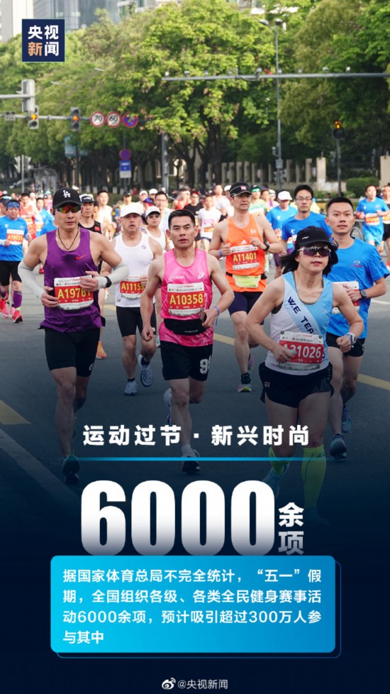 刚刚过去的“五一”假期,全国国内旅游出游合计2.74亿人次;重点餐饮企业销售额同比增长57.9%;“五一档”电影总票房(不含预售)超15亿元;6000余项健身赛事活动吸引300多万人参与……戳图↑看
