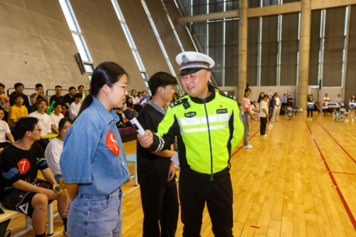 活动现场,来自南京理工大学大一的学生分为8个队伍展开了全面PK,15道交通规则问答题,让学生们一会儿眉头紧锁一会儿踊跃举手,答对加分、答错扣分的机制让不少学生对每道题目都万分谨慎、多方思量。这些题目难易结合,既有日常交通安全规范中的常识问题,也有需要动一动脑筋的“拿不准问题”。南京市公安局交警三大队民警李飘羽说:“交通规则关乎每个人的生命安全,只有熟知熟记交规知识并身体力行,才能更好地营造安全的出行环境,我们也希望大家能够将在比赛中的这种小心谨慎用到实际出行中去。”