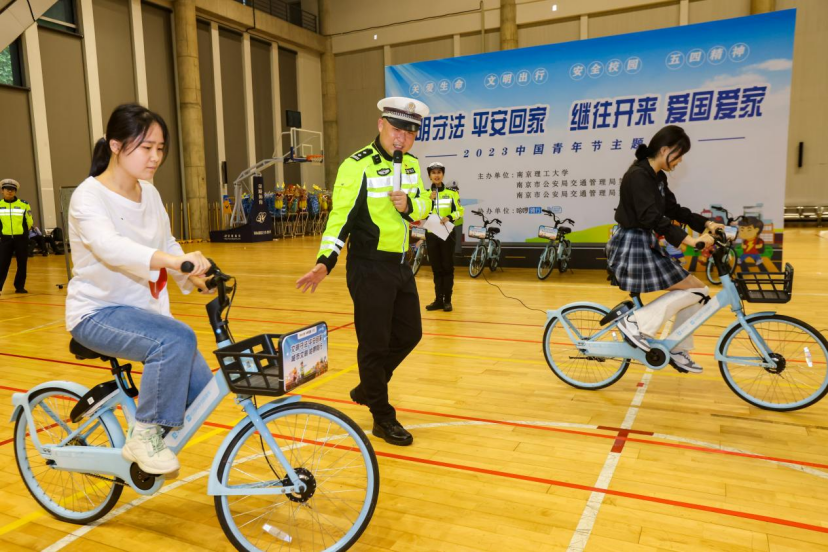 窗外阴雨霏霏,室内暖意洋洋。在5月4日中国青年节这天,哈啰骑行携手南京交警走进南京理工大学,共同开展“文明守法 平安回家 继往开来 爱国爱家”交通安全主题宣传活动,通过别开生面的自行车慢行、障碍骑行比赛及交通规则知识问答等互动方式,提升青年学生的交通安全意识和非机动车骑行技能,进一步培养大学生们自觉遵守交通法规的良好习惯。