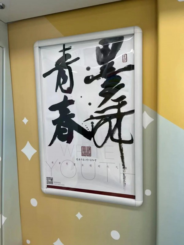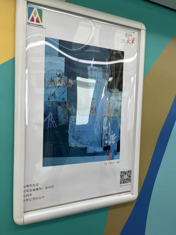 车厢上挂着绘画、书法、照片等作品,市青书协、青美协、青摄协也将轨道交通作为他们的创作基地,以吸引更多的青年朋友“打卡”轨道交通。