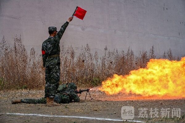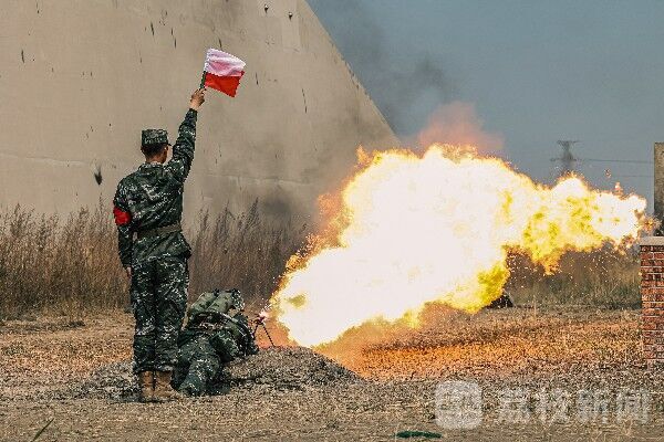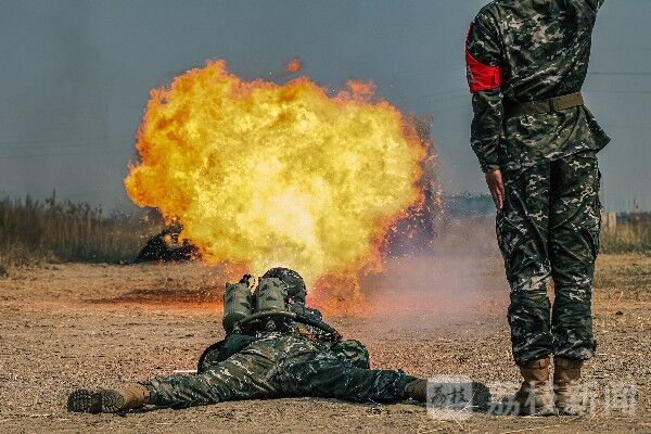 “喷火手注意,占领喷火位置!”一声令下,身负十五斤喷火具的喷火器手快速奔袭、卧倒瞄准、精确击发,长达100m、外焰温度高达1000°C的“火龙”直扑目标。
