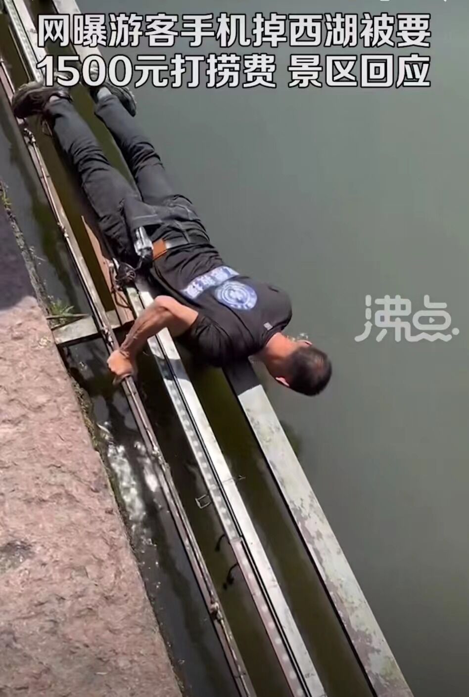 五一期间,一位男子在杭州西湖帮游客打捞手机,收取1500元的高额打捞费,引起了网友热议。
