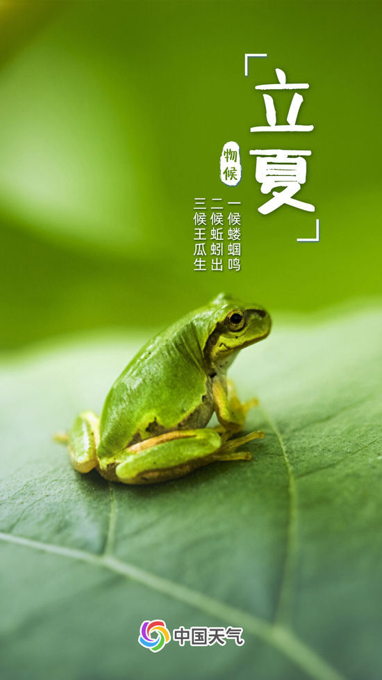 立夏一候“蝼蝈鸣”,也叫“蛙始鸣”,说的是这一时节青蛙逐渐开始活跃、聒噪起来;二候“蚯蚓出”,此时蚯蚓懒洋洋地开始翻松泥土了;三候“王瓜生”,这里的王瓜泛指藤蔓类植物,此时开始攀爬生长,绿意盎然。立夏时节,万物已褪去了春日的青嫩,开始日日攀长,至此万物繁茂。