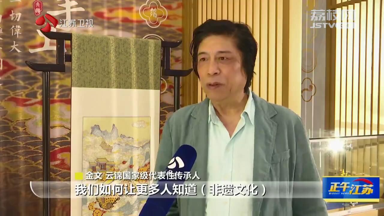 云锦国家级代表性传承人金文说:“这个非遗是在你身边,不是在博物馆里,不是离你们很远。我们有个观念叫传统工艺现代表达,所有做的东西都和当下有所关联。我们通过活动做一个巡回的展出,要讲好中国故事,如何去传承,如何让更多人知道非遗文化。”