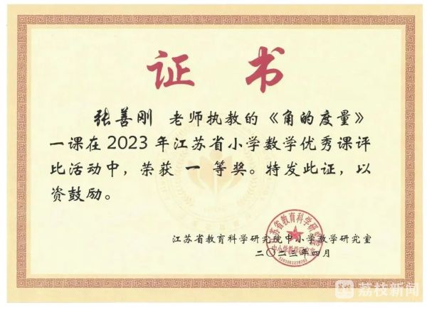 热烈祝贺!近日,在江苏省小学数学优质课评比活动中,十三个地区20节课参加了角逐,盐城大丰区实验小学教师张善刚执教的《角的度量》一课代表盐城市参加比赛,以出色的表现荣获一等奖,为盐城数学再添光彩,下面我们一起来看张老师是如何上课的吧。